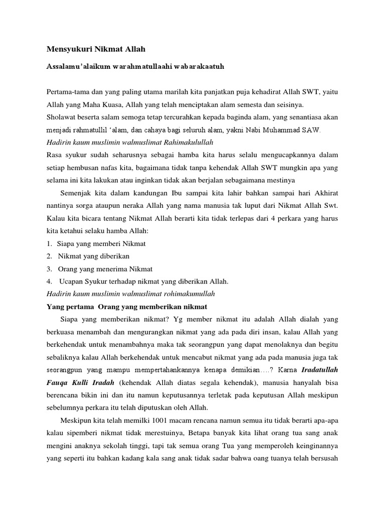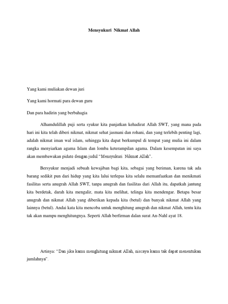 Pidato Mensyukuri Nikmat Allah